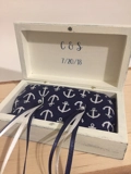 To add to your box, I can hand sew a sweet little ring pillow in your choice of color. Just choose from the drop down menu: either one of the anchor fabric colors, or the burlap insert. You can choose to have with or without lace edging and I will finish the pillow option it with coordinating ribbons on which to secure your wedding rings.