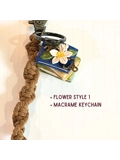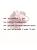 Each stack of books and keychain or bookmark is made to order from premium quality polymer clay, macramé cord and cotton/bamboo yarns. I don't use molds, or machines, so everything is made completely by hand - from each petal of the flowers, to each knot of the macramé and each stitch of the crochet bookmark.