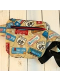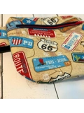 The bag shown here is made from a fun 'Road Trip' themed fabric with a navy blue cotton lining.