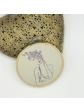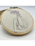 The one shown is on a 'natural' linen fabric, embroidered in a light purple thread - I can use any colour fabric for the background and any colour thread for the embroidery.