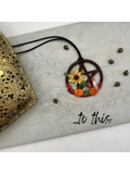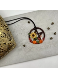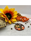 This piece measures approximately 2 inches in diameter and is finished with dark brown cord. You can use it as an ornament, as a pendant, to hang in your car....
