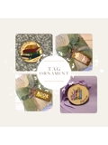 * A choice of: Personalized Maple Wood Slice Ornament - hand burned and hand painted. OR a Walnut Wood Tag Style Ornament, personalized with permanent vinyl wording and design.