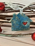 Alcohol inks are then used to add beautiful colors to the homes. Each color finds its own place to be on the home, making each one individual. A red heart is painted before being baked again…