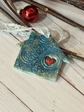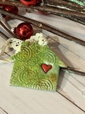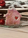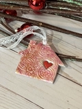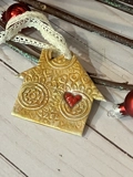 Each of these little homes is hand cut from ‘pearl’ premium polymer clay; each is hand stamped with a lovely bohemian mandala pattern. They are then baked to cure.