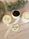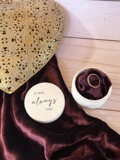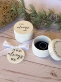 Beautiful, simply timeless...these round ring boxes are personalized with your choice of wording for the lid and space for initials/date/names inside the lid.