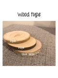 The wood sizes to choose from are as follows: Aspen (shown in main images) - approximately 3.75”x3” and 1/4” thick Maple - approximately 3.75” in diameter and 5/16” thick Silver Birch - approximately 4” in diameter and 3/8” thick.