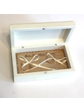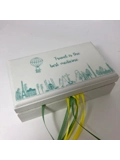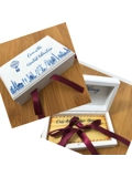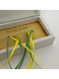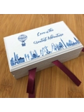 There is space on the lid of the box for a little message or quote; the one shown is in a matching color in a calligraphy style font and reads 'let's travel the world' you may have wording of your choice.
